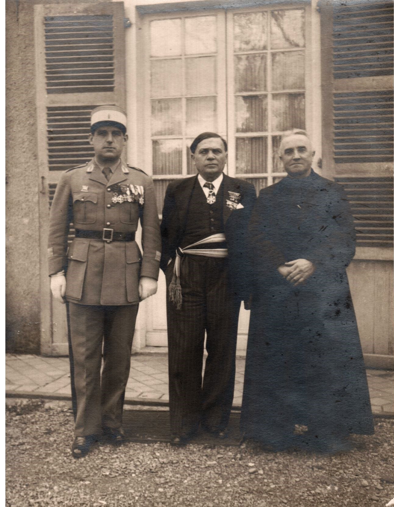 The two men to either side of Paul Mirat are a local priest, Auguste Daguzan, and an officer in the Vichy cavalry named Bergès.