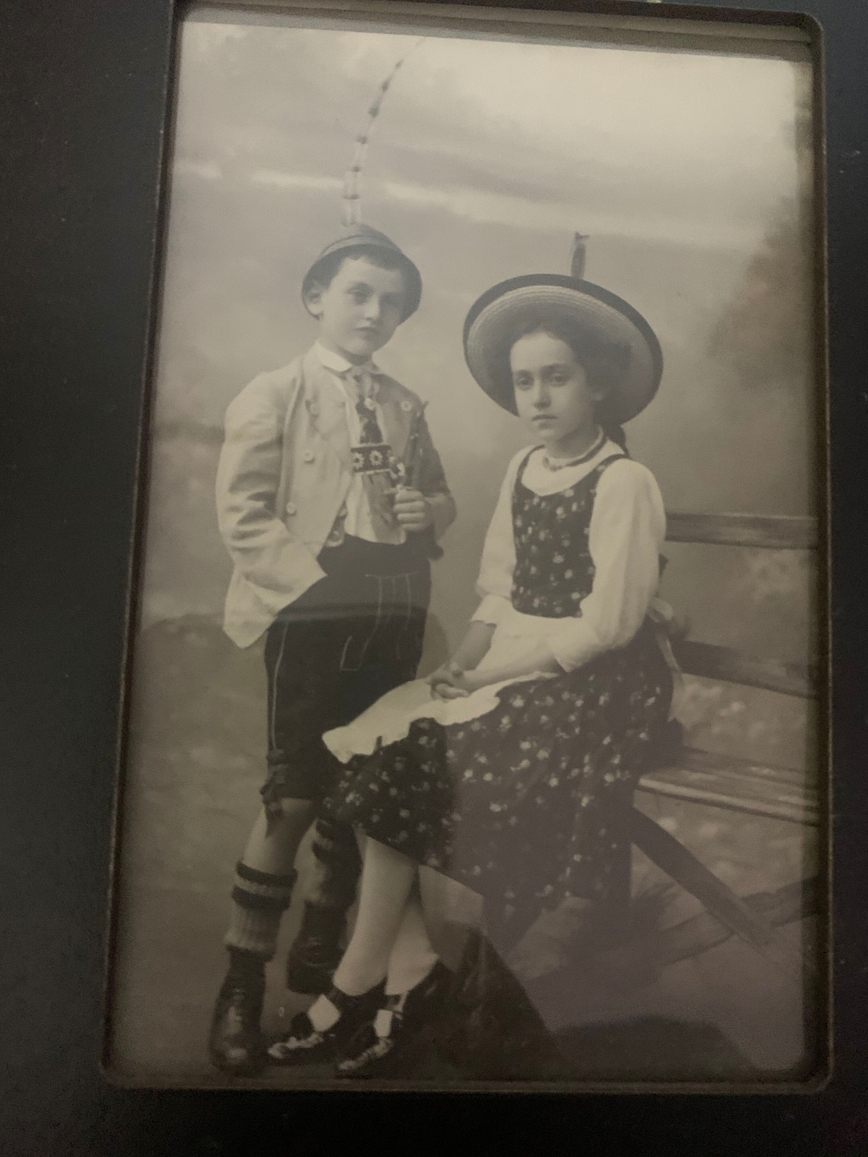 Or he could have been wearing one of those little alpine beanies like the one he was wearing in this other picture (alongside his older sister Beate, who looks like she’s staring into the abyss).