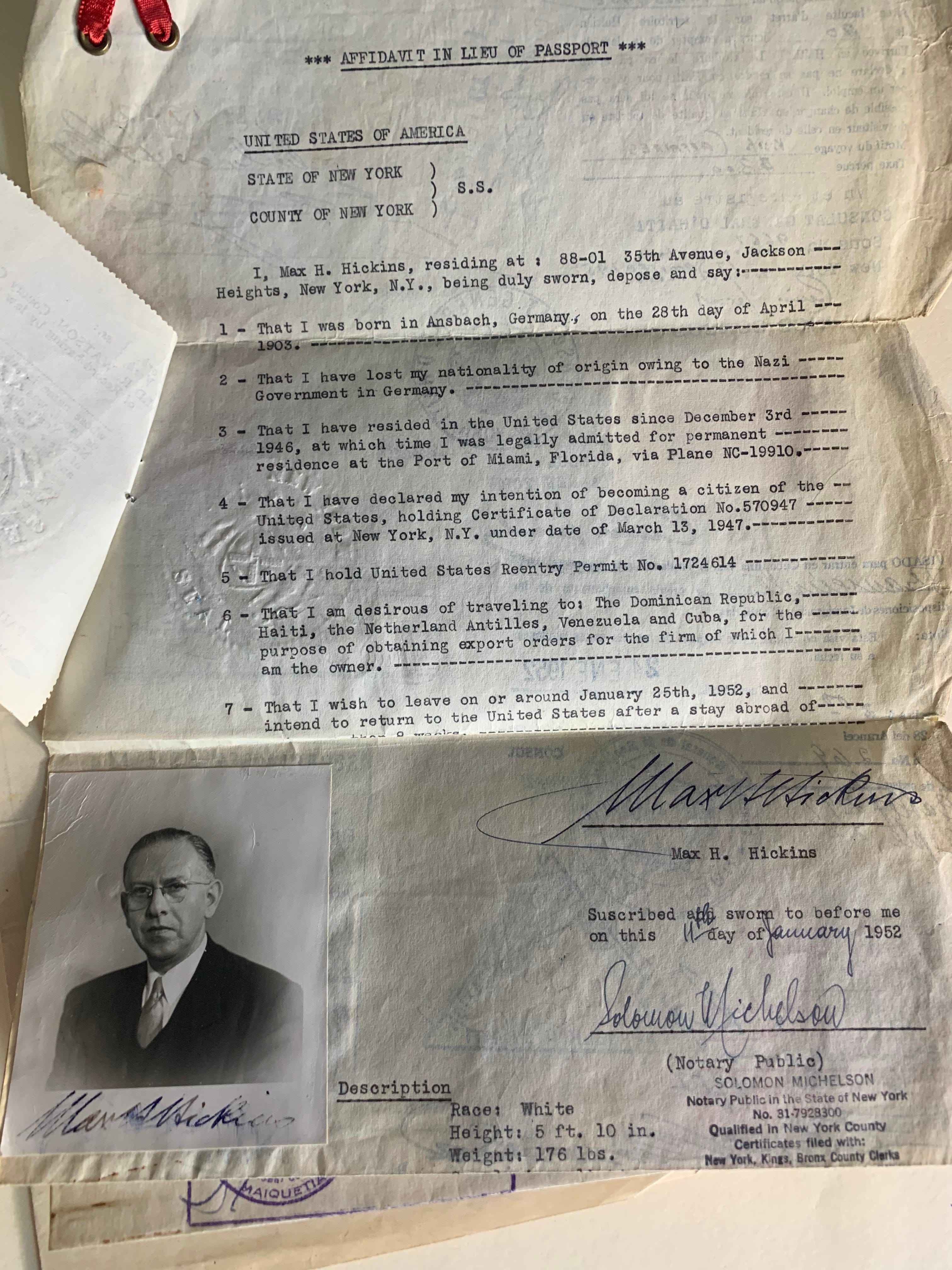 Note that the consul asks my father to bring the family’s safe passage documents – these were in lieu of passports, which my father and his wife and son didn’t have. It bears repeating that they didn’t have passports because they were German Jews, and Germany had in 1936 stripped Jews of their nationality.